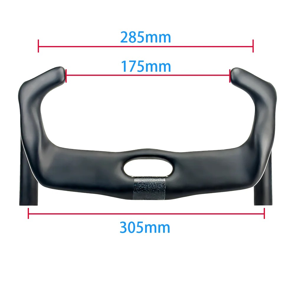 Rozmery riadidiel sú navrhnuté s ohľadom na efektívnu kontrolu nad bicyklom. Celková šírka v spodnej časti činí 305 mm, zatiaľ čo horný úchop má šírku 285 mm. Nejužšia časť v oblasti spodného držania ponúka 175 mm, čo umožňuje pevné uchopenie a stabilné vedenie bicykla. Toto rozloženie rozmerov je vhodné pre cestnú jazdu, kde je dôležitá presnosť a stabilita.