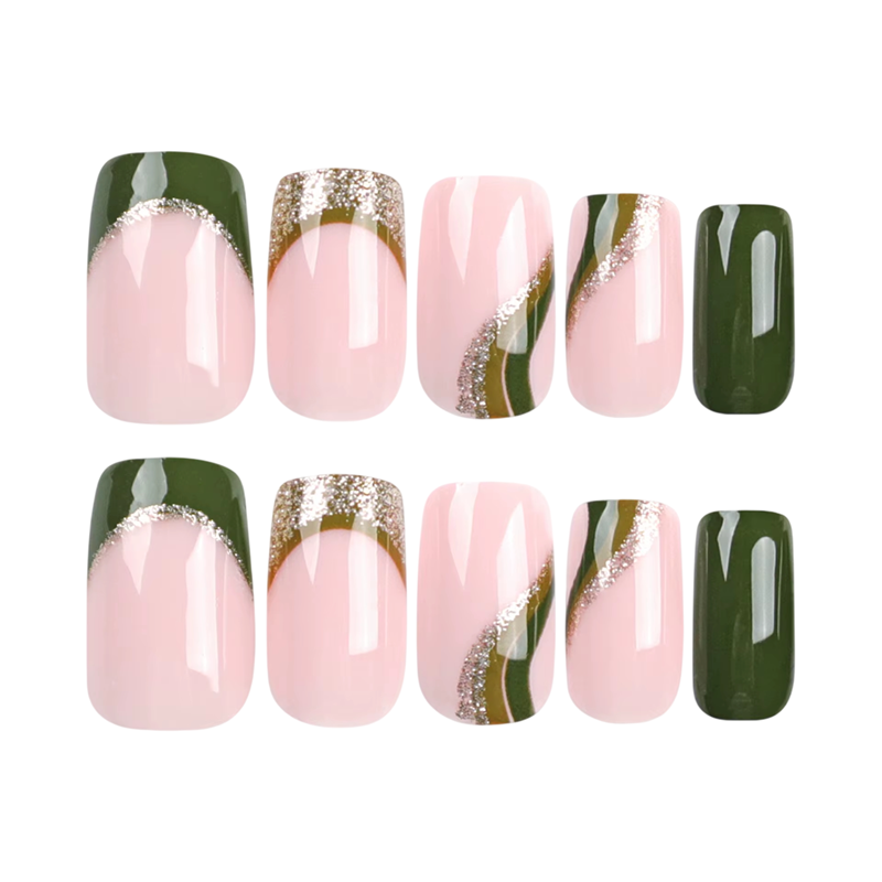 Jednotlivé nechty sú navrhnuté tak, aby spolu vizuálne ladili a vytvárali vyvážený celok. Štvorcový tvar je obľúbený pre svoj jednoduchý a prehľadný vzhľad, ktorý nepôsobí rušivo. Sada je vhodná pre zákazníkov, ktorí hľadajú základné a čisté riešenie manikúry, bez výrazných dekoratívnych prvkov. Jednotná dĺžka a tvar pomáhajú dosiahnuť upravený dojem, ktorý sa ľahko kombinuje s rôznymi štýlmi obliekania. Tento typ umelých nechtov predstavuje praktickú voľbu pre domácu manikúru.