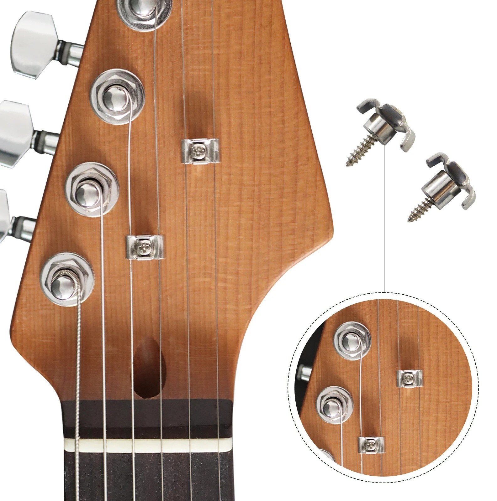 Tento držák strun na hlave je vhodný pre všetkých, ktorí si chcú udržať čistý zvuk, konzistentné napätie strun a elegantný vzhľad svojho nástroja.