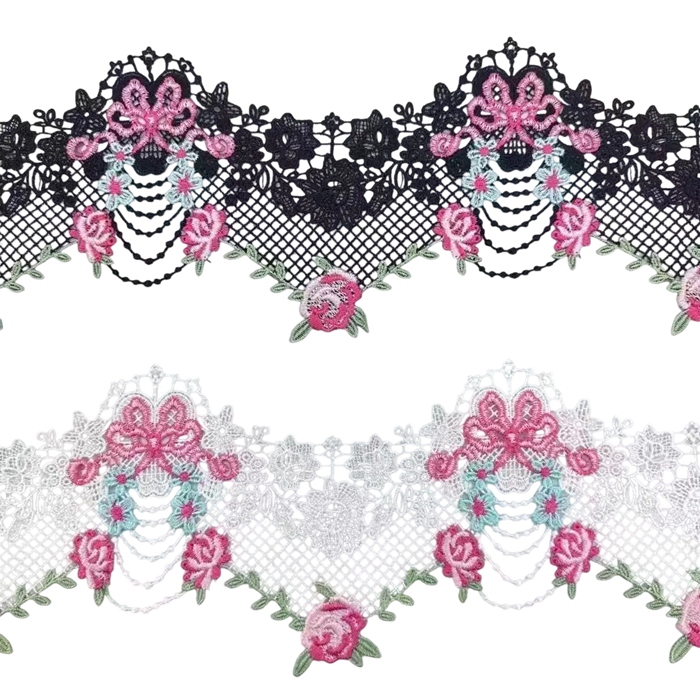 Elegantná krajková stuha s kvetinovým motívom je ideálna na šitie, zdobenie odevov, svadobné dekorácie aj kreatívne DIY projekty. Celý popis