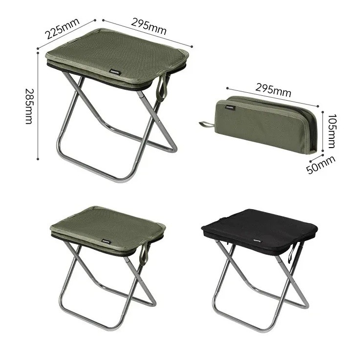 • Zložená stolička sa zmestí do praktickej taštičky vhodnej aj do vrecka alebo batohu