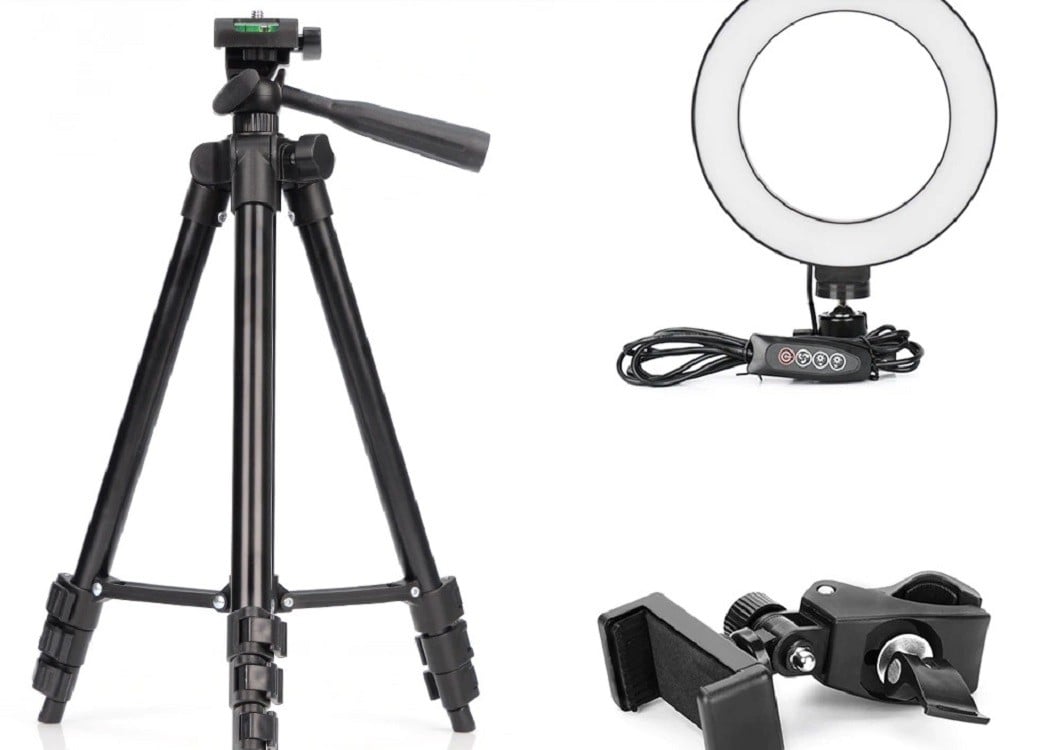 Obsah balenia: 1x svetlo, 1x statív, 1x držiak na telefón