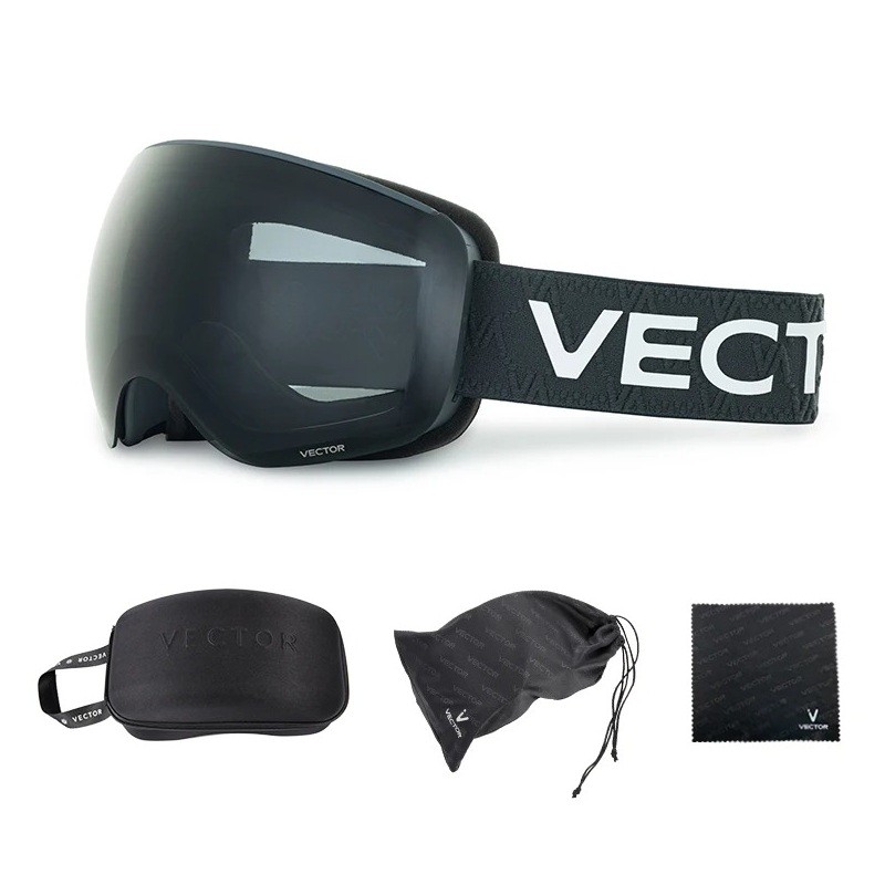 Lyžiarske okuliare 19,0 x 10,5 cm UV400 Unisex Polykarbonát Nemlžící 19% Čierne Vector Pevné puzdro Látkové puzdro Hadřík