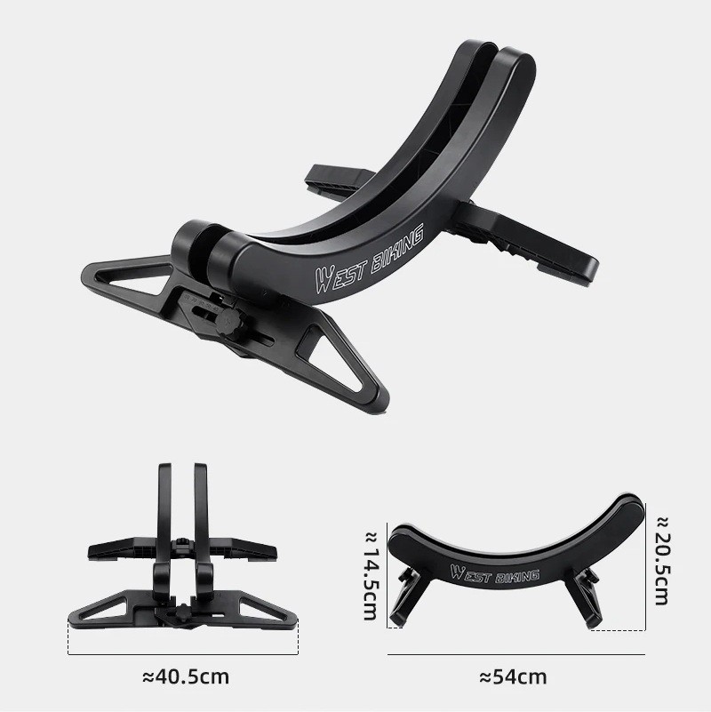 Odolný nastaviteľný stojan na bicykle z ABS plastu pre cestné aj horské bicykle. Jednoduchá inštalácia, nosnosť 15 kg, šírka 30–80 mm. Celý popis