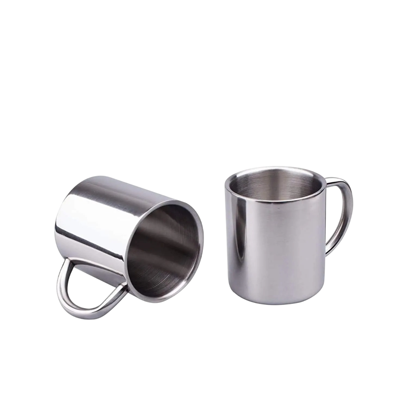 Nerezový hrnček s uchom 200 ml z nerezovej ocele v striebornej farbe na pitie kávy, čaju a ďalších nápojov doma aj na cestách
