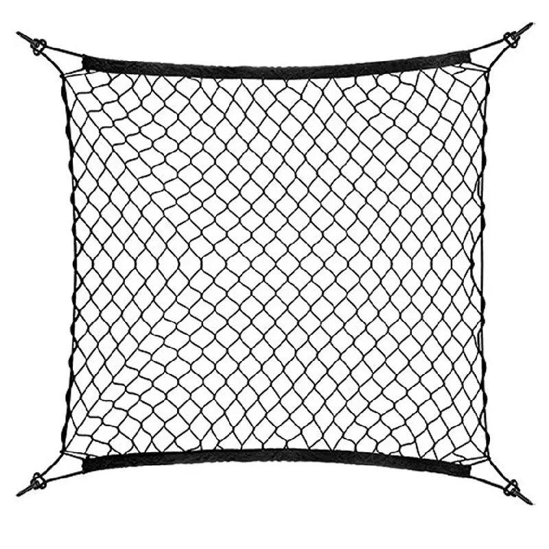 Nylonová čierna sieť do kufra auta 70 x 70 cm pružná až 105 x 105 cm Upevňovacia elastická sieť na zavazadlá Organizér nákladu