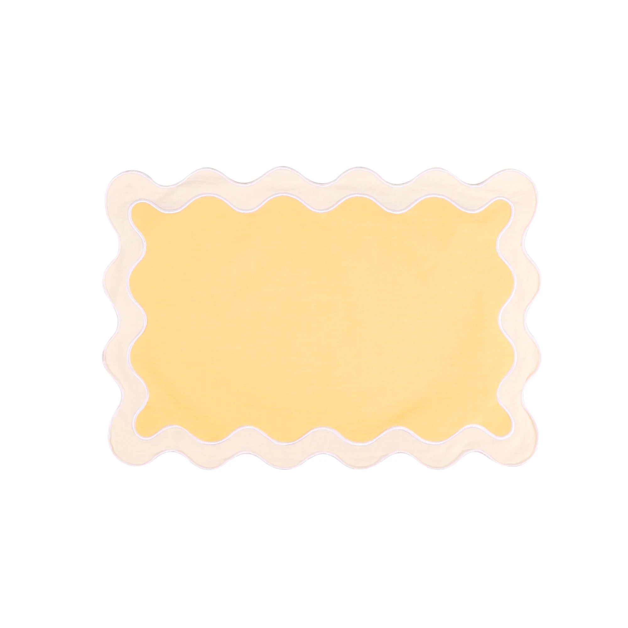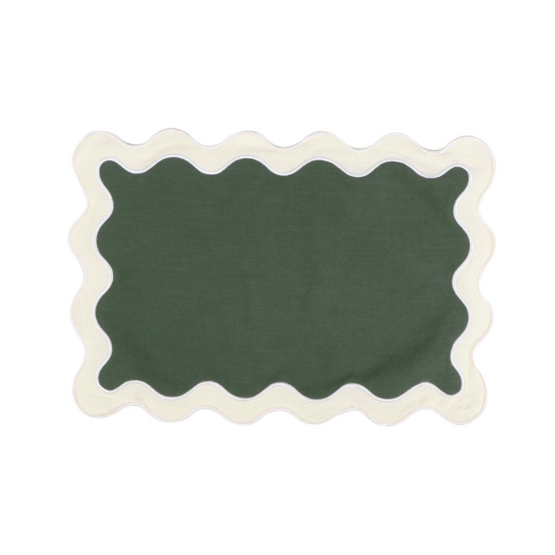 Bavlnené prestieranie 48 × 33 cm s vlnitým okrajom. Hravý dizajn a prírodný materiál pre štýlové každodenné stolovanie. Celý popis