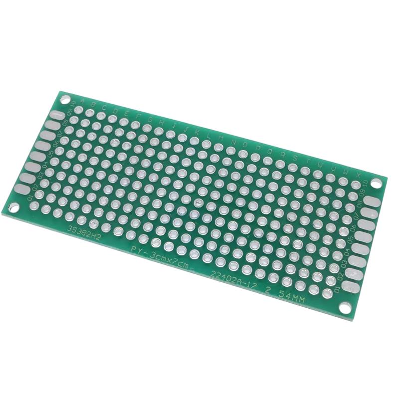 Táto obojstranná prototypová doska plošných spojov o rozmeroch 3 x 7 cm je ideálnou voľbou pre všetkých, ktorí pracujú s elektronikou – od študentov až po pokročilých kutilov. Doska je určená na montáž, testovanie a vývoj prototypov a vďaka svojej konštrukcii sa hodí aj na použitie s regulátormi napätia a ďalšími súčiastkami. Je vyrobená z kvalitného a odolného materiálu, čo zaisťuje pevnosť, dlhú životnosť a stabilitu pri práci. Štandardná rozteč otvorov 2,54 mm a priemer cca 1 mm umožňujú jednoduché osadenie širokého spektra bežne používaných elektronických komponentov. Doska je navrhnutá na spoľahlivé použitie aj v náročnejších podmienkach – s prevádzkovou teplotou od -40 °C do 80 °C je univerzálna pre rôznorodé projekty. Vďaka obojstrannému prevedeniu ponúka väčšiu variabilitu pri tvorbe a spájkovaní obvodov, čo ocenia najmä tí, ktorí experimentujú a tvoria vlastné zapojenia.