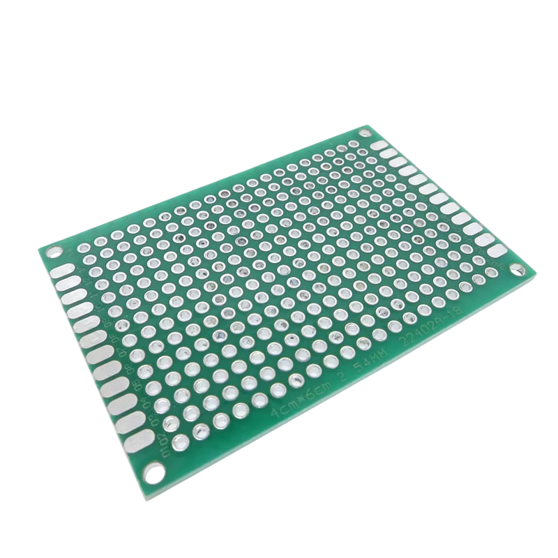 Táto obojstranná univerzálna prototypová doska plošných spojov o rozmeroch 4 x 6 cm je vhodná pre všetkých, ktorí sa venujú elektronike – od študentov až po skúsených konštruktérov. Vďaka svojej konštrukcii je ideálnym riešením pre montáž, testovanie a vývoj prototypov obvodov. Môže sa využiť aj pre prácu s regulátormi napätia alebo inými súčiastkami. Doska je vyrobená z odolného a kvalitného materiálu, ktorý zaručuje pevnosť, stabilitu a dlhú životnosť. Štandardná rozteč otvorov 2,54 mm a priemer otvorov cca 1 mm umožňujú jednoduchú kompatibilitu s bežne používanými elektronickými súčiastkami. Vďaka širokému rozsahu prevádzkových teplôt od -40 °C do 80 °C je doska spoľahlivá aj v náročnejších podmienkach. Jej obojstranné prevedenie zabezpečuje viac možností pri návrhu zapojenia a umožňuje prehľadnejšie usporiadanie súčiastok.