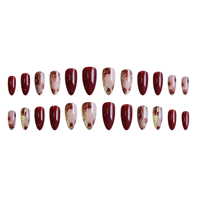 Ozdobná nehtová kolekcia Mandľový tvar 25,6–18,3 mm 12 veľkostí 24 lesklých falošných nechtov Roztomilé vzory s lepidlom