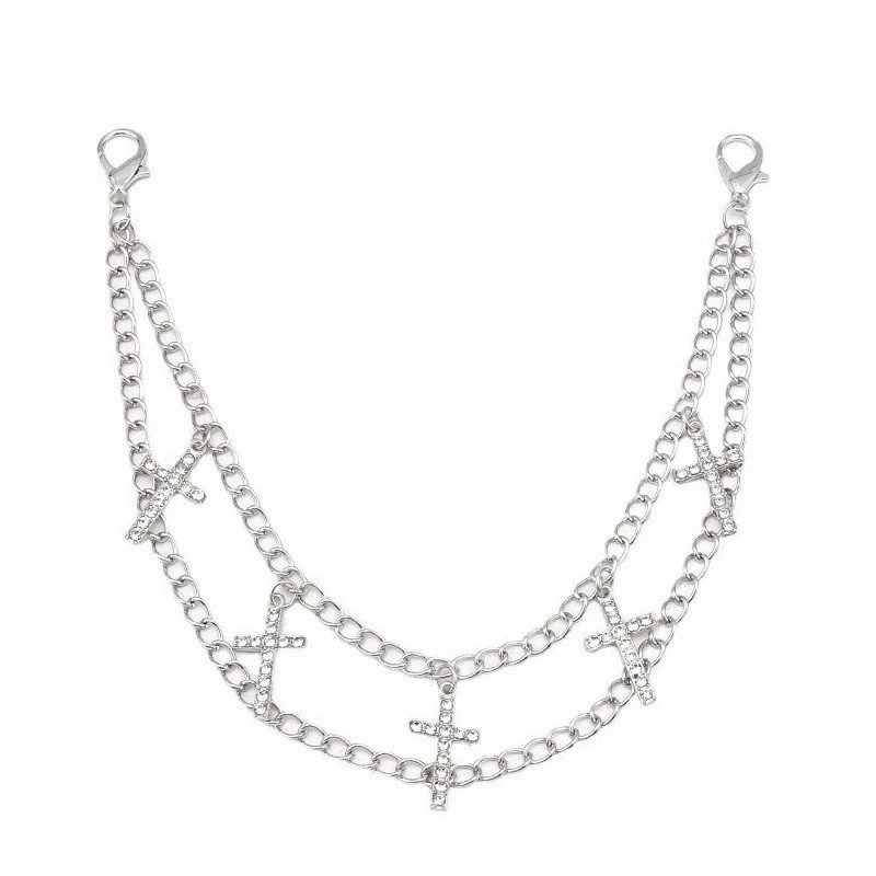 Ozdobný reťazec na kabelku dvojitý s príveskami krížikov Kovová zliatina Strieborný dekoratívny reťazec na kabelku náhradné krátke ucho