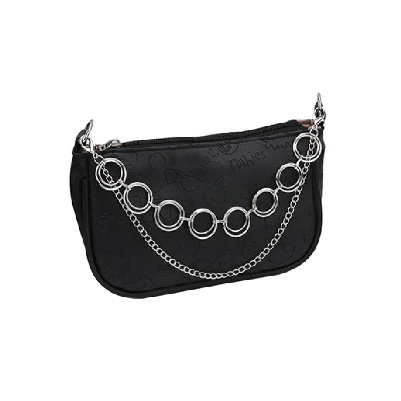Ozdobný reťazec na kabelku môže slúžiť ako dekoratívny doplnok, ktorý doplní vzhľad kabelky o výrazný kovový detail. Tento model je tvorený dvoma reťazcami, ktoré vytvárajú vrstvený efekt a dodávajú doplnku zaujímavý vzhľad. Dominantným prvkom sú veľké kruhové články, ktoré tvoria hlavnú dekoratívnu časť reťazca.