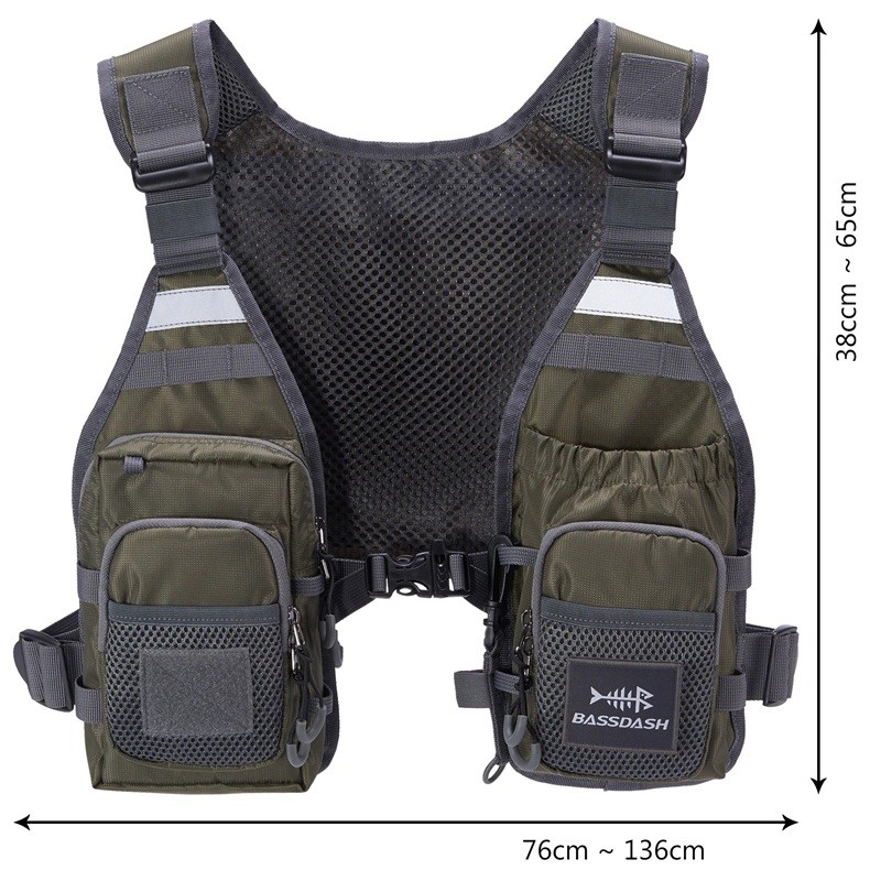 Zadná časť vesty je vyrobená z priedušnej sieťovanej tkaniny, ktorá môže prispieť k lepšej cirkulácii vzduchu pri pohybe. Nastaviteľné popruhy na ramenách a v páse pomáhajú prispôsobiť vestu rôznym postavám.
