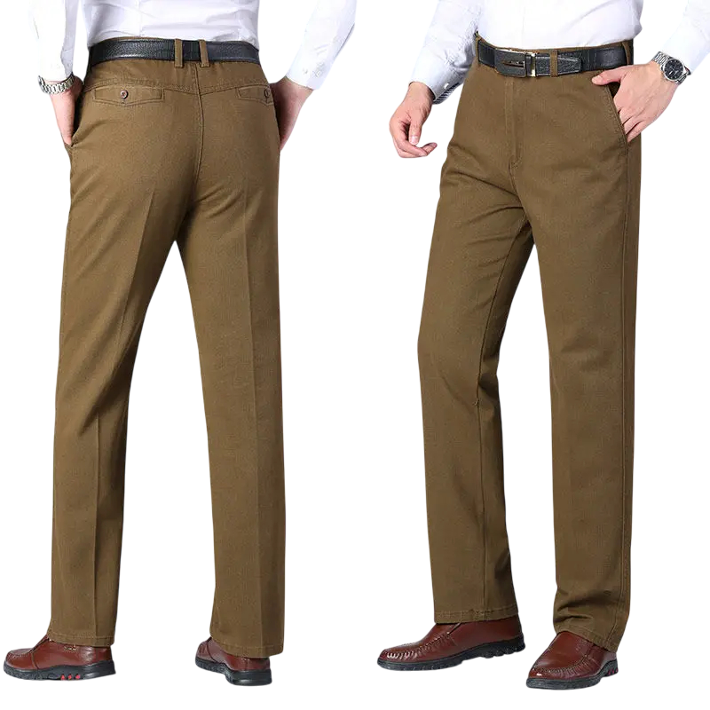 Nohavice sú ideálne pre mužov, ktorí hľadajú spojenie komfortu, kvality a elegancie. Bavlna zaručuje priedušnosť a príjemný pocit pri nosení, zatiaľ čo rovný strih dodáva moderný a uhladený vzhľad. Vďaka univerzálnemu dizajnu ich ľahko skombinujete s košeľou, sakom alebo sveterom podľa príležitosti. Sú vhodné ako pre každodennú prácu, tak aj pre spoločenské akcie. Tieto štýlové pánske nohavice predstavujú ideálnu rovnováhu medzi pohodlím a eleganciou a stanú sa základom vášho šatníka.