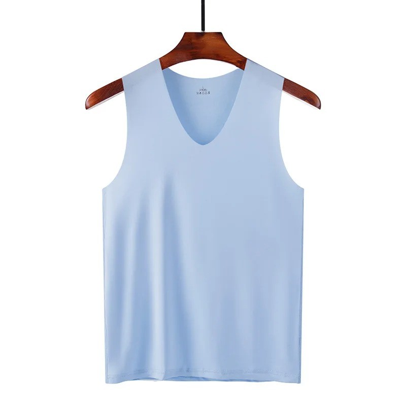 Pánske tielko s výstrihom do V Jednofarebné tielko z polyesteru a hodvábu Ľahký priedušný materiál na leto a voľný čas