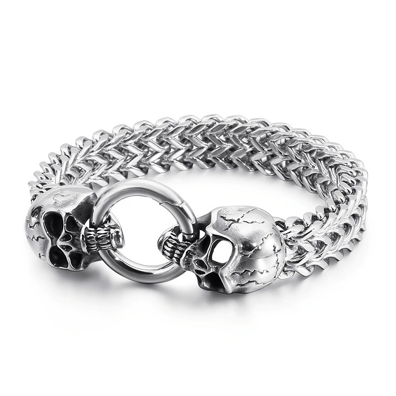 Pánsky masívny náramok s lebkami