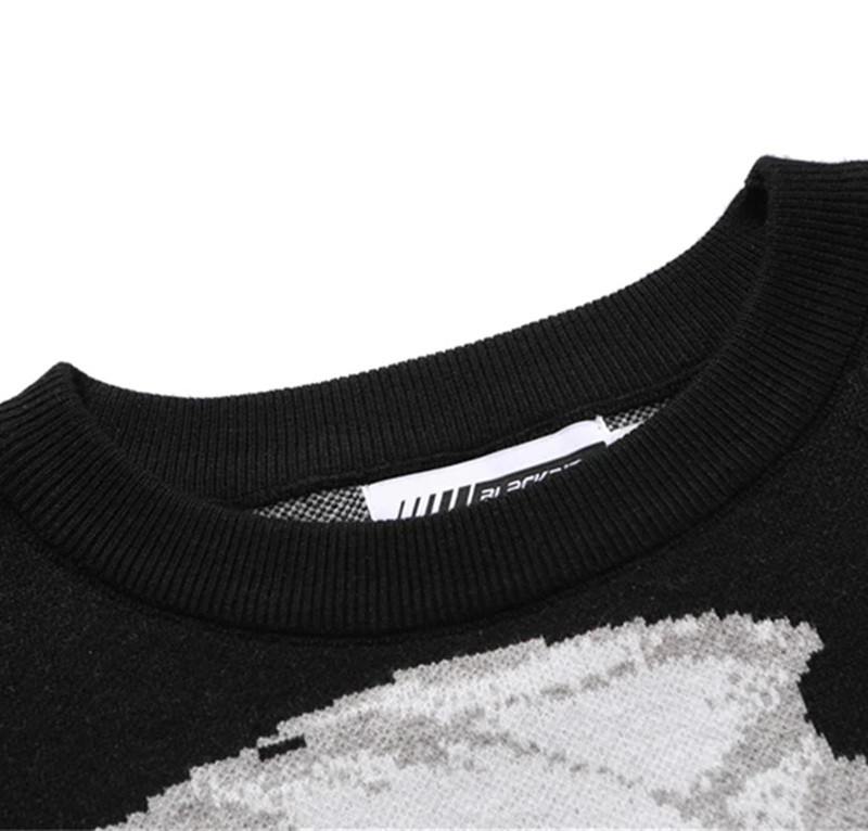 Pánsky sveter čierny Japonský štýl Anime Dievča Pletený sveter s potlačou anime dievčaťa Štýlový streetwear sveter Polyester