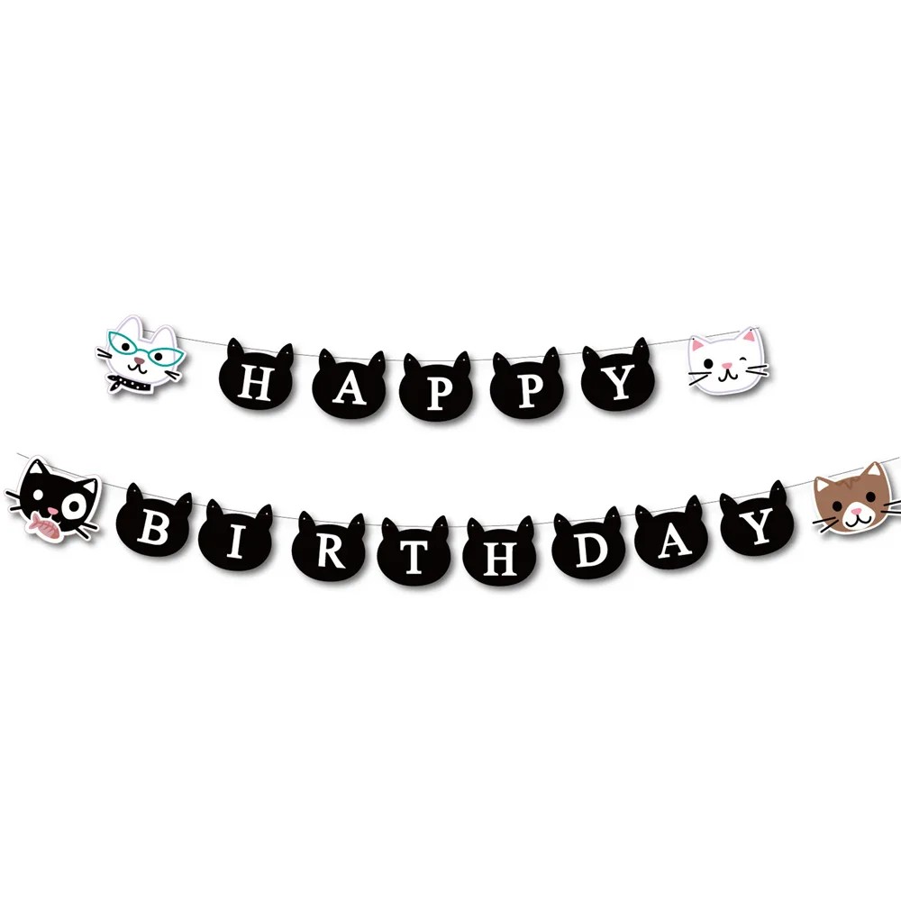 Papierová narodeninová girlanda Happy Birthday Mačacie hlavy Závesná dekorácia s kreslenými mačkami Party výzdoba na detskú oslavu