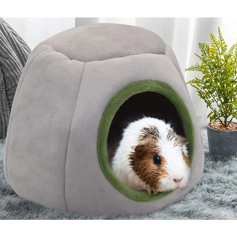 Pelíšok pre hlodavce 21 x 17 cm Šedý teplý domček z plyšovej látky a huby Mäkkučké hniezdo pre křečky, morčatá a malé hlodavce