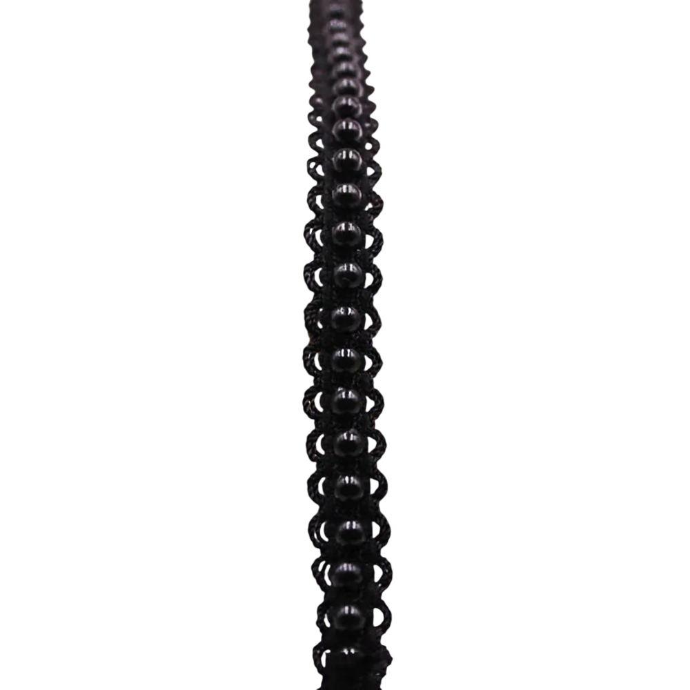Dekoratívna krajková stuha s perlovým vzhľadom je ideálnym doplnkom pre kreatívne projekty, zdobenie textilu aj výrobu dekorácií. Jemný dizajn s perlovým efektom dodáva výrobkom elegantný a luxusný vzhľad, ktorý je vhodný pre slávnostné aj bežné dekorácie. Stuha je vyrobená z kvalitného polyesteru, vďaka čomu je pevná, odolná a zároveň sa s ňou ľahko pracuje. Praktická šírka 1,5 cm umožňuje precízne zdobenie rôznych materiálov. Vďaka dĺžke 91 cm je vhodná pre menšie aj stredne veľké dekoratívne projekty.
