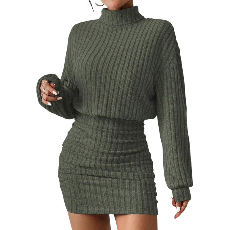Pletené minišaty s rolákom Rebrované svetrové šaty s dlhým rukávom Elegantné priliehavé úpletové šaty na jeseň a zimu