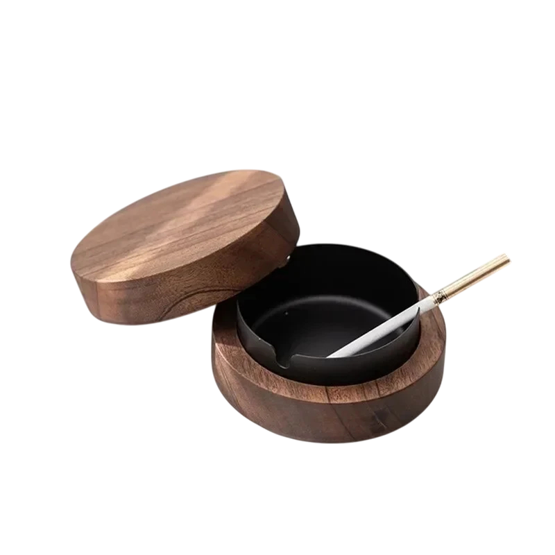 Tento popolník z orechového dreva kombinuje eleganciu prírodného materiálu s praktickým nerezovým vnútrom. Vďaka viečku, ktoré minimalizuje šírenie dymu a zápachu, je ideálny na použitie doma aj vonku. Kompaktné rozmery 10 × 4,5 cm zaisťujú, že sa pohodlne zmestí na stôl, balkón alebo terasu, a zároveň poskytuje dostatok priestoru na odkladanie popola a nedopalkov. Popolník je vhodný pre cigarety aj doutníky, takže uspokojí rôzne potreby fajčiarov. Jeho elegantný dizajn z orechového dreva dokonale doplní interiér a zároveň odolná nerezová vložka zaisťuje jednoduché čistenie a dlhú životnosť.
