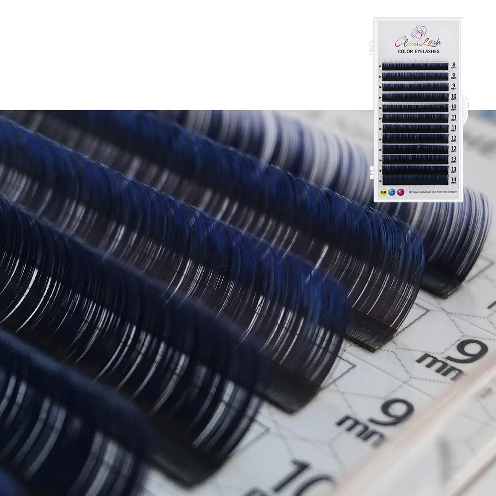 Prechodové farebné umelé riasy C skrútenie 8–14 mm hrúbka 0,07 mm Dvoubarevné nalepovacie riasy s farebnými končekmi pre objem