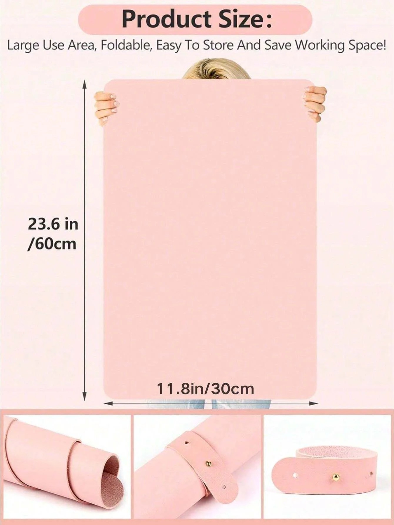 odolná voči poškriabaniu a nečistotám, čo zaisťuje dlhú životnosť a jednoduchú údržbu. Skladací dizajn podložky umožňuje jednoduché prenášanie a skladovanie, čo je ideálne pre mobilné manikérky alebo pre použitie v obmedzených priestoroch.