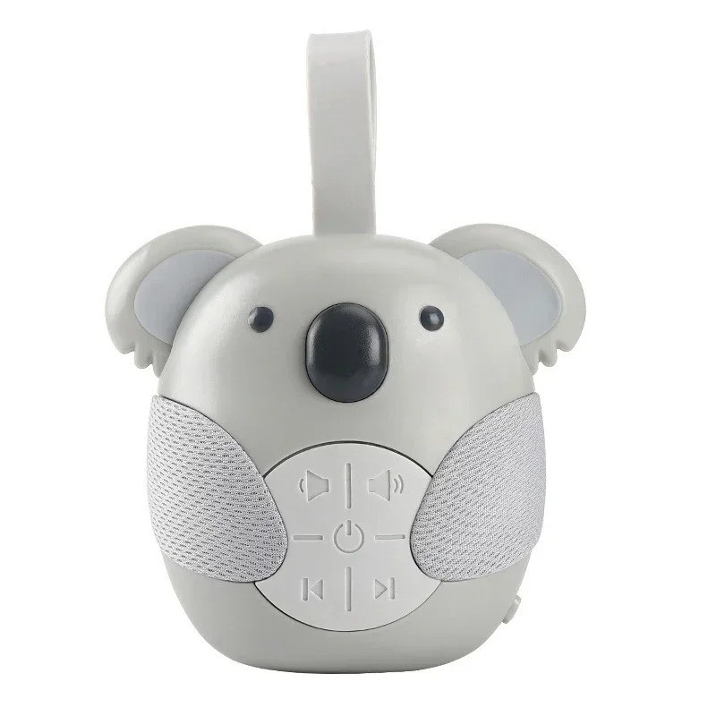 Prenosný stroj na uspávanie detí s časovaným vypnutím, 3 skladby s bielym šumom a svetelnou hudbou, s motívom koaly, ABS materiál, veľkosť 12 x 10 x 9 cm. Batérie nie sú súčasťou balenia. Celý popis