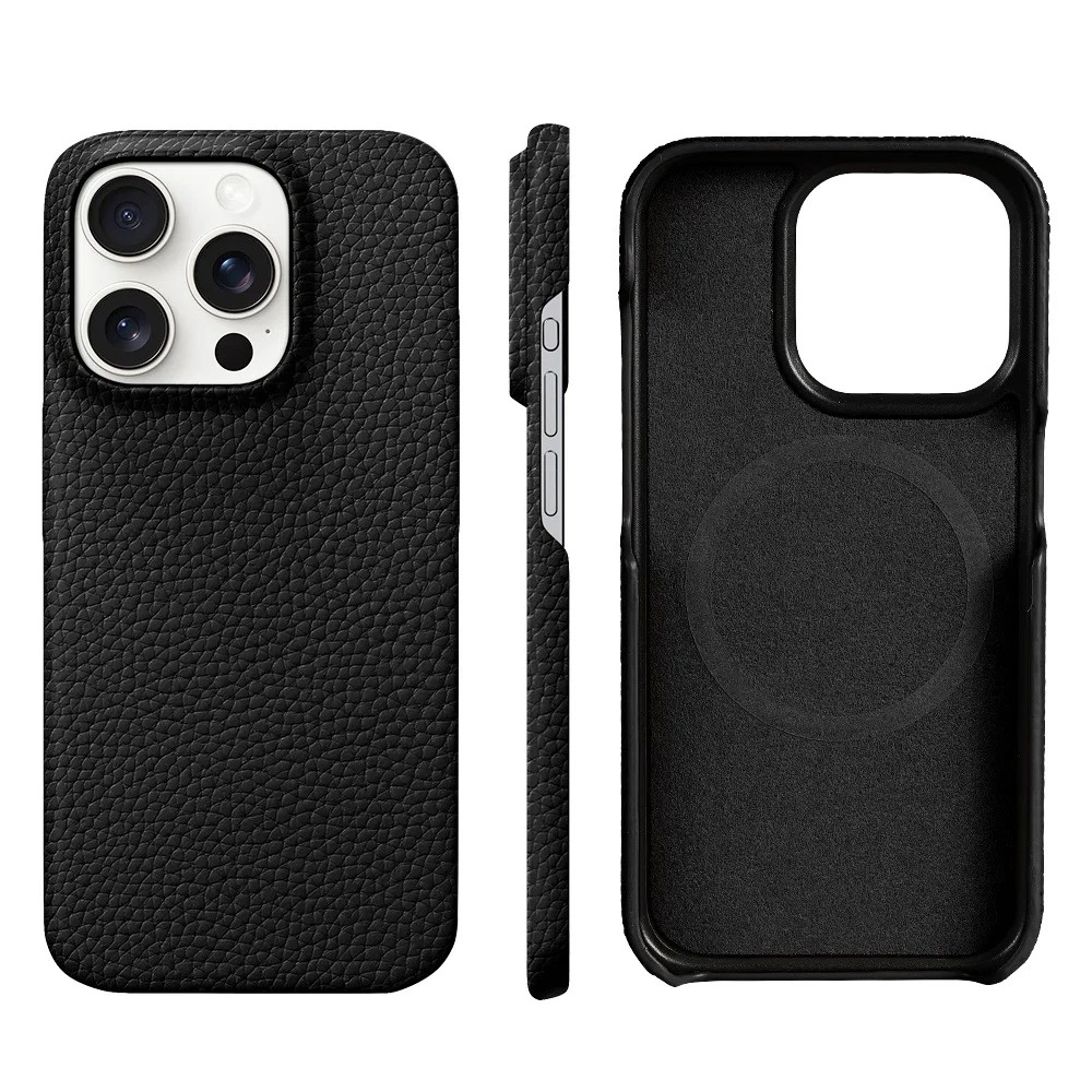 Hlavnou prednosťou je magnetický chránič, ktorý zabezpečuje pevné uchytenie a istotu pri držaní telefónu. Povrch z hovädzej kože dodáva puzdru luxusný vzhľad a príjemný pocit na dotyk. Konštrukcia je navrhnutá tak, aby chránila zadnú stranu aj hrany telefónu proti poškriabaniu a drobným nárazom. Presné výrezy umožňujú jednoduchý prístup ku všetkým tlačidlám, konektorom aj fotoaparátu bez nutnosti zloženia puzdra. Povrchová úprava navyše zlepšuje úchop a znižuje riziko vyklznutia z ruky.
