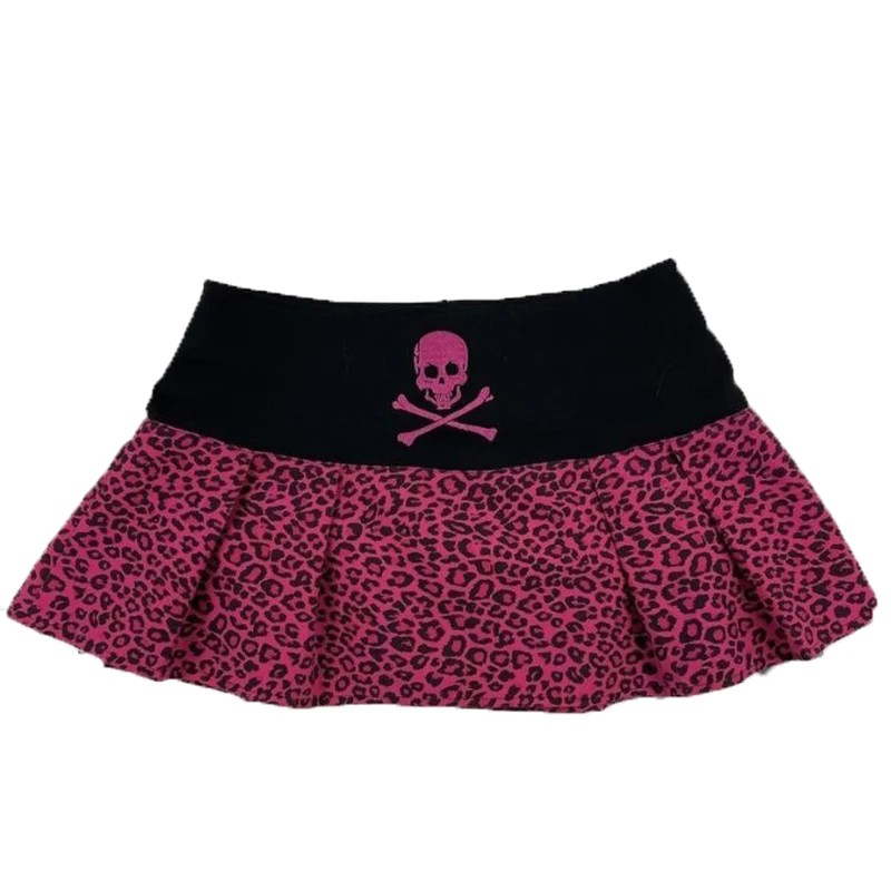 Ružová mini sukňa s leopardím vzorom a lebkou Rockový punkový štýl Krátka sukňa pre ženy Výrazná potlač Streetwear festival