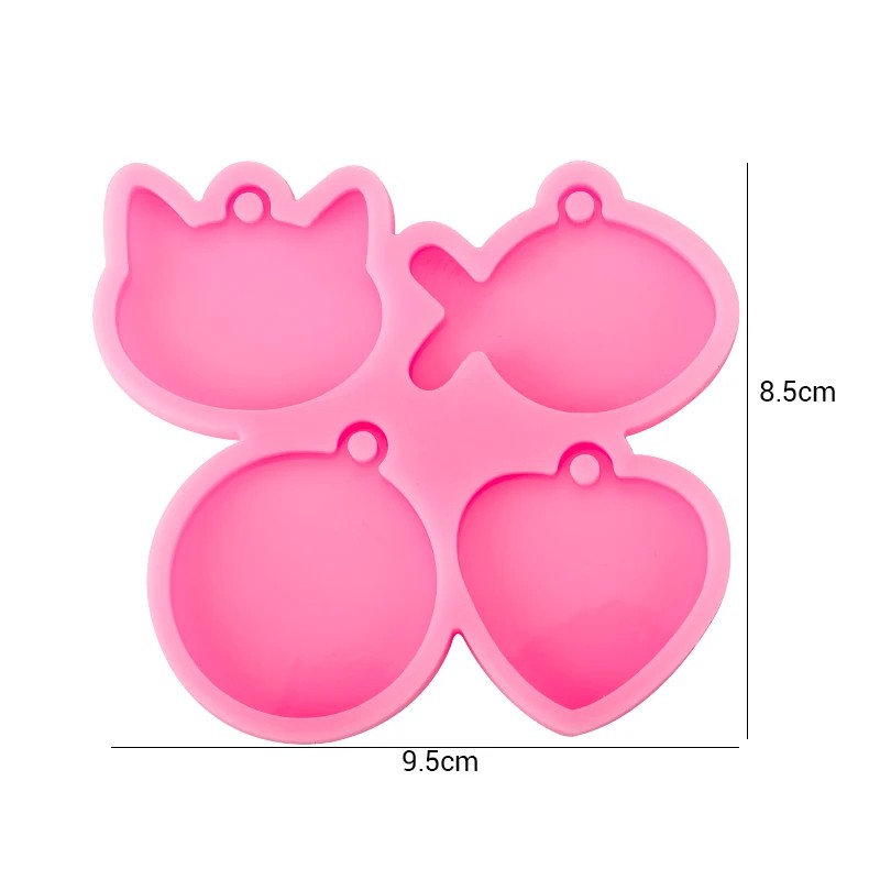 Táto silikónová forma so štyrmi tvarmi – mačka, ryba, kolečko a srdce je skvelým pomocníkom pre všetkých, ktorí milujú kreatívne tvorenie. Vďaka univerzálnym motívom môžete vyrábať prívesky, kľúčenky, ozdoby aj originálne dary. Rozmery formy 9,5 × 8,5 cm umožňujú pohodlnú prácu a dostatočnú veľkosť odliatkov.
