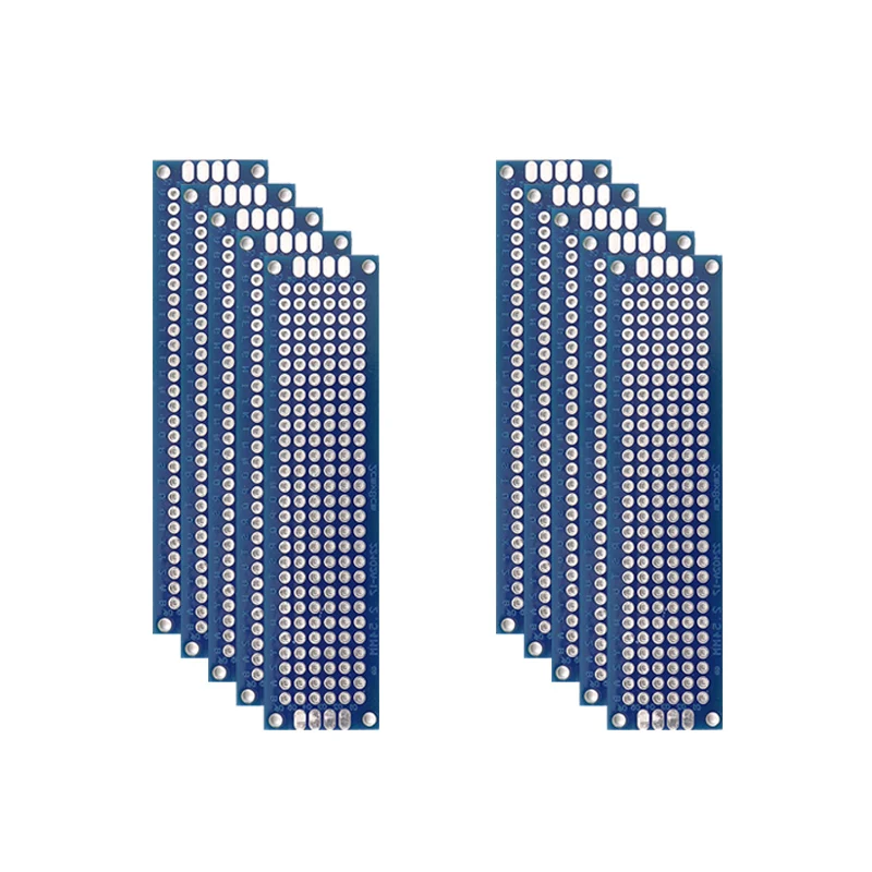 Tieto univerzálne prototypové dosky sú vhodné na ručné spájkovanie, bastlenie, školskú výučbu aj profesionálny vývoj. Štandardný rozstup otvorov 2,54 mm umožňuje jednoduché osadzovanie bežných elektronických súčiastok, modulov aj konektorov. Dosky sú ideálne na rýchle prototypovanie, testovanie návrhov alebo tvorbu trvalých konštrukčných riešení.