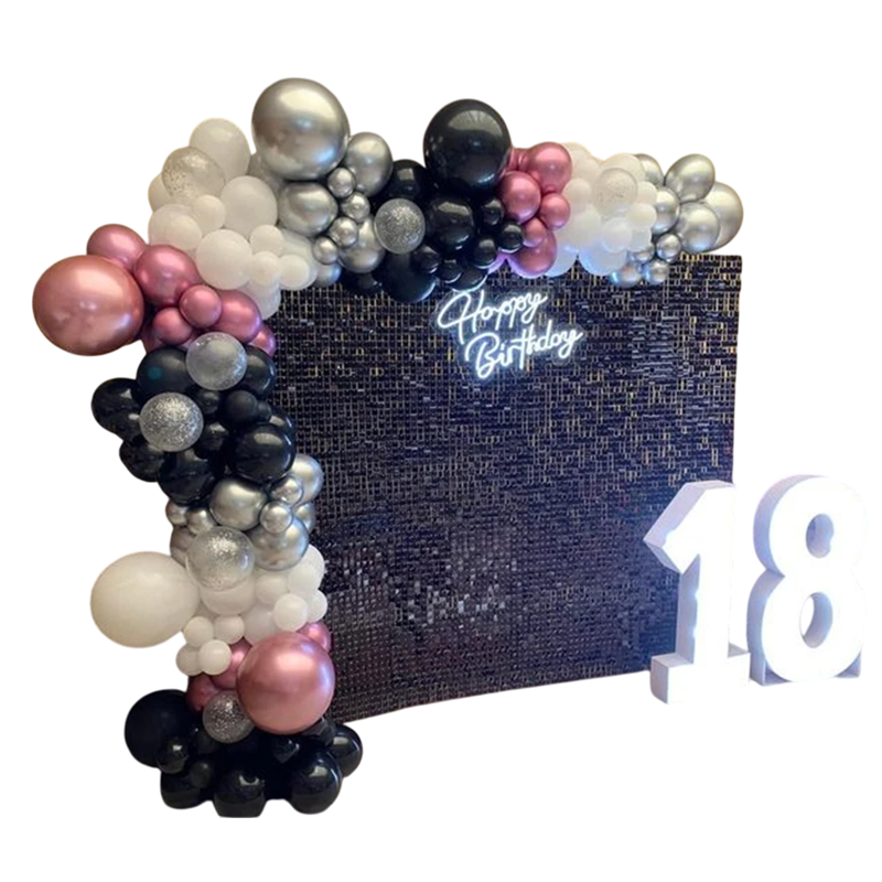 Dodajte svojim udalostiam elegantný a luxusný vzhľad s touto sadou 18 ks čiernych trblietavých panelov. Celková veľkosť pozadia je 90×180 cm, čo je ideálny rozmer pre fotokútiky, pódia, slávnostné stoly či dekoratívne steny. Každý panel má rozmer 30×30 cm a je vyrobený z odolných materiálov, ktoré nevyblednú ani sa nedeformujú. Čierna farba v kombinácii s trblietkami flitrov vytvára sofistikovaný efekt, ktorý sa hodí pre svadby, narodeninové oslavy, promócie, vianočné večierky alebo firemné akcie. Panely sa spájajú pomocou praktických patentných spojov, čo zaručuje rýchlu a jednoduchú montáž.