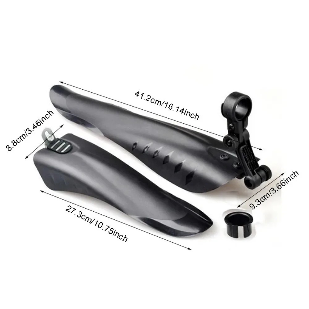 Táto sada dvoch blatníkov je navrhnutá pre cyklistov, ktorí hľadajú účinnú ochranu pri jazde v daždi, na mokrej vozovke alebo v teréne. Vďaka kombinácii predného a zadného blatníka dochádza k výraznému obmedzeniu odstrekujúcej vody, blata a drobných nečistôt, ktoré sa bežne dostávajú na oblečenie, rám bicykla aj jeho mechanické časti. Blatníky sú vyrobené z ohybného materiálu, ktorý sa dokáže prispôsobiť tvaru bicykla a zároveň odoláva bežnému namáhaniu pri jazde. Praktické rozmery zabezpečujú dostatočné krytie kolies bez zbytočného obmedzenia pohybu alebo zásahu do ovládateľnosti. Veľkou výhodou je tiež jednoduchá inštalácia, ktorá je prehľadne znázornená na obrázkovom návode.