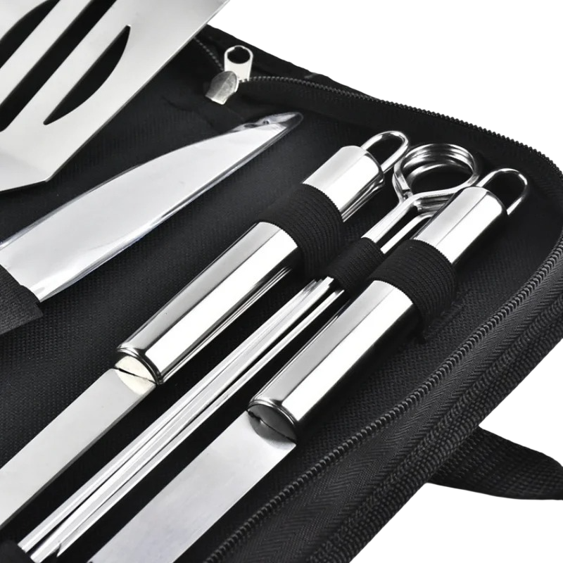 Praktická sada nástrojov na grilovanie obsahuje všetko potrebné pre pohodlnú prípravu grilovaných pokrmov. Vďaka kombinácii niekoľkých základných nástrojov umožňuje jednoduchú manipuláciu s mäsom, zeleninou aj špízmi pri grilovaní. Táto kompletná grilovacia sada z nerezovej ocele je vhodná pre domáce grilovanie na záhrade, terase aj pri vonkajších BBQ stretnutiach.