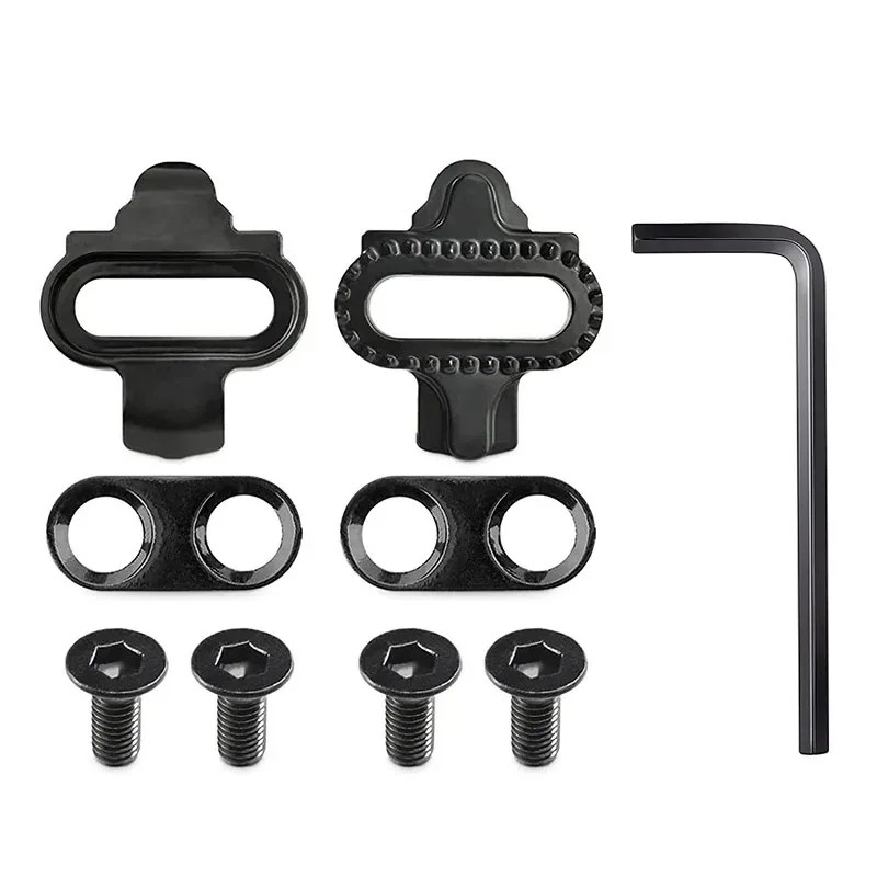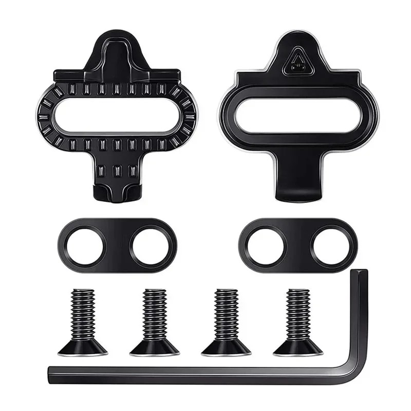 Kompletná sada pedálových klipsov pre cyklistov, kompatibilná s SPD systémom, vrátane skrutiek a imbusového kľúča pre rýchlu inštaláciu. Celý popis