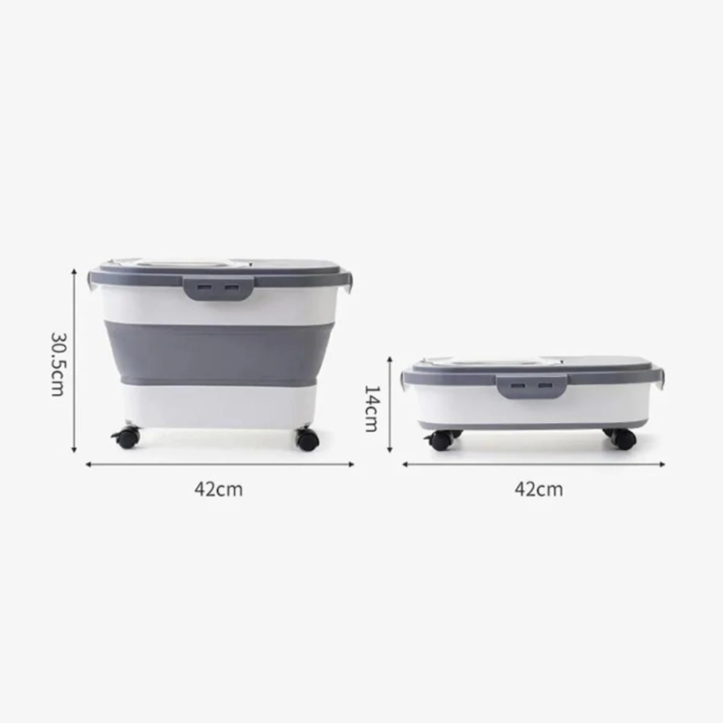 Vhodná do domácností s viacerými zvieratami aj do kuchýň, kde je potrebné efektívne organizovať priestor. S touto skládacou nádobou na krmivo s kolieskami získate praktického pomocníka, ktorý spája funkčnosť, čistý dizajn a vysokú kvalitu spracovania.