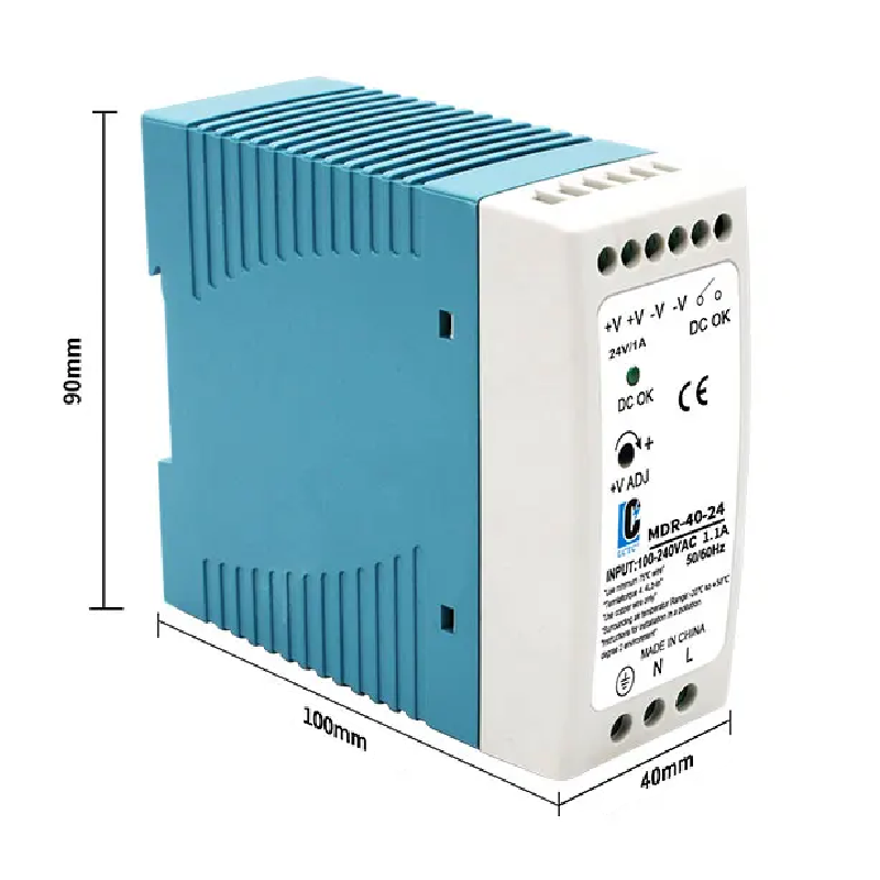 Kompaktný priemyselný napájací zdroj na DIN-lištu s výkonom 40W, stabilným výstupom 24V 1A a univerzálnym vstupom AC 100–240V. Celý popis