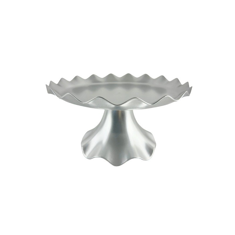 Elegantný stojan na tortu o priemere 24 cm a výške 12 cm je ideálny pre štýlovú prezentáciu tort, zákuskov aj ďalších sladkých pochúťok. Vyvýšené prevedenie dodá slávnostnému stolu profesionálny vzhľad a pomôže zvýrazniť servírovaný dezert. Dekoračný tvar podstavca pôsobí moderne a zároveň slávnostne, takže sa hodí na svadby, narodeniny aj iné výnimočné príležitosti. Stabilná konštrukcia zaisťuje bezpečné umiestnenie torty aj pri plnom zaťažení. Praktické rozmery umožňujú jednoduché začlenenie do domácej aj cateringovej výzdoby.