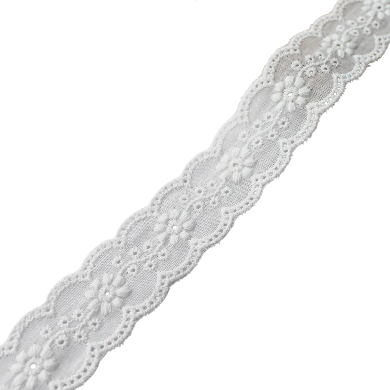 Dekoratívna stuha s kvetinovou výšivkou je ideálnym doplnkom pre kreatívne šitie, zdobenie odevov a výrobu originálnych dekorácií. Vďaka jemnej výšivke s kvetinovým motívom dodáva každému výrobku elegantný a štýlový vzhľad. Stuha je vyrobená z kombinácie polyesteru a bavlny, ktorá spája pevnosť syntetického vlákna s príjemným dotykom prírodného materiálu. Vďaka praktickej šírke 2,7 cm je vhodná na dekoratívne lemovanie rôznych textilných výrobkov. Celková dĺžka 4,6 cm umožňuje využitie pre menšie kreatívne projekty alebo detailné dekorácie.