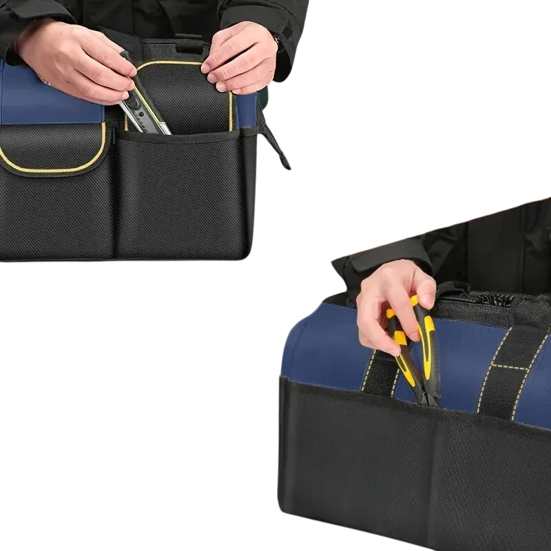 Táto taška na náradie je perfektným riešením pre tých, ktorí potrebujú priestranný, odolný a vodoodolný úložný priestor pre každodenné použitie v dielni, garáži alebo na stavbe. Poskytuje optimálnu kombináciu funkčnosti a odolnosti.