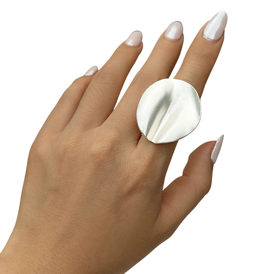 Tento výrazný dámsky prsteň je ideálnou voľbou pre ženy, ktoré hľadajú originálny a nepřehladnuteľný šperk. Vďaka svojmu veľkému okrúhlemu tvaru a nerovnému povrchu pôsobí moderne a umelecky. Prsteň je vyrobený z kvalitnej zliatiny kovov, ktorá zaisťuje dlhú životnosť aj atraktívny vzhľad. Nastaviteľná veľkosť umožňuje jednoduché prispôsobenie rôznym veľkostiam prstov bez kompromisov v pohodlí. Skvele doplní ako každodenný outfit, tak aj výraznejšie módne kombinácie.
