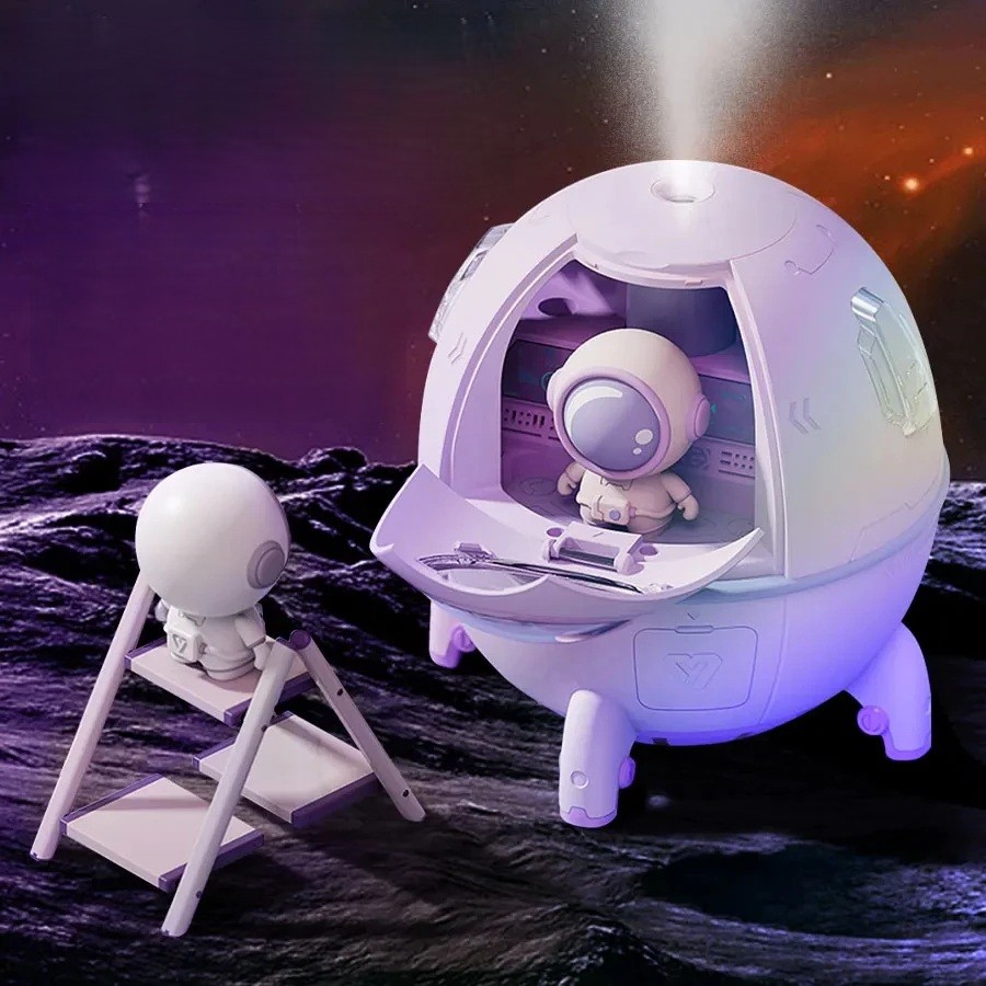 Originálny zvlhčovač vzduchu v podobe vesmírnej lode zaujme na prvý pohľad svojím hravým dizajnom. Súčasťou je malý panáčik v skafandri, ktorý dodáva produktu jedinečný vzhľad a robí ho ideálnym doplnkom predovšetkým do detskej izby. Vďaka objemu nádržky 220 ml je vhodný na každodenné zvlhčovanie menších miestností. Prístroj disponuje nabíjacím prevádzkovým režimom a moderným napájaním USB Typ C (DC5V/1A), čo umožňuje pohodlné a flexibilné používanie bez nutnosti stálého pripojenia k sieti.