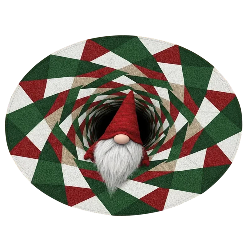 Vánočný koberec 40 x 40 cm Flanelový zimný kobereček do domácnosti s motívom škriatka v farebnom víre Kulatá mäkká sviatočná dekorácia