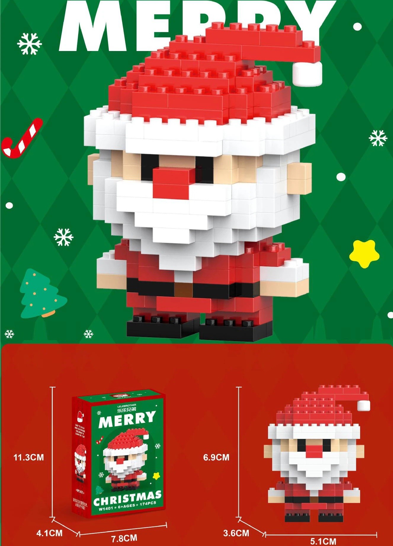 Vianočná stavebnica Santa Claus 5,1 x 3,6 x 6,9 cm 174 ks Mikro kostky Plastový model Mini stavebnice Vianočná dekorácia