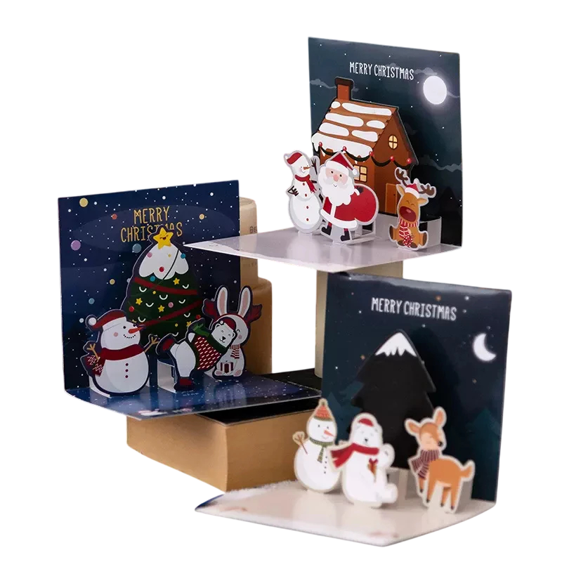 Vianočné a novoročné 3D prianie z papiera Skládacie prianie s vianočnými motívmi Stromček Snehuliak Dary Hviezdy Kreatívne dekoratívne sviatočné blahoželanie