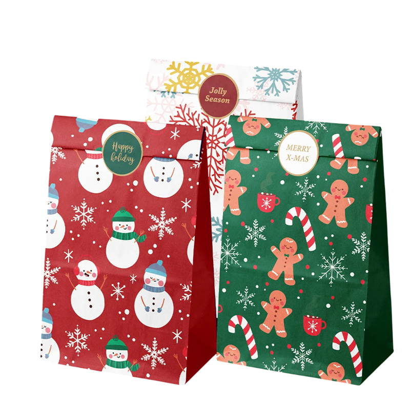 - Obsah balenia: 24 ks vianočných sáčkov (6 motívov × 4 ks) + samolepky