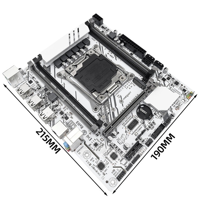 Pre pripojenie periférií je doska vybavená 6× USB 2.0 portami, gigabitovým LAN portom Realtek a štandardným zvukovým rozhraním (MIC-IN, LINE-OUT, LINE-IN). Stabilné napájanie zabezpečuje kombinácia 24pin ATX konektora a 8pin napájania CPU. Vďaka kompaktným rozmerom 216 × 190 mm je vhodná aj pre menšie PC skrine.
